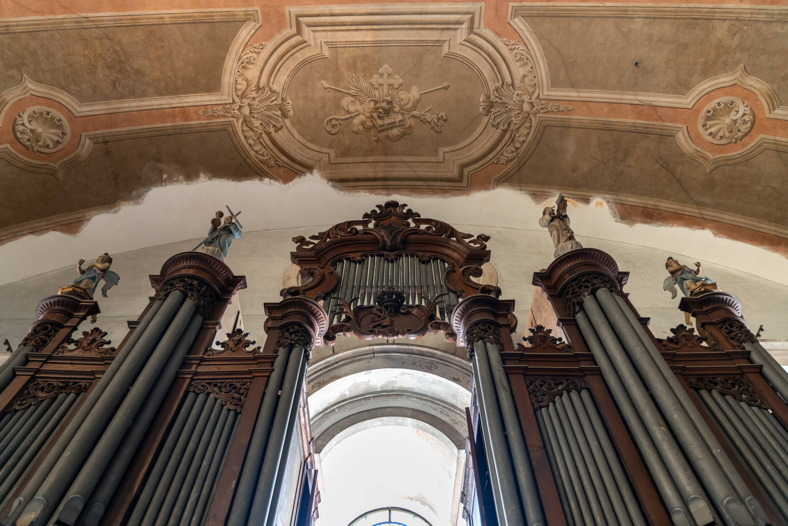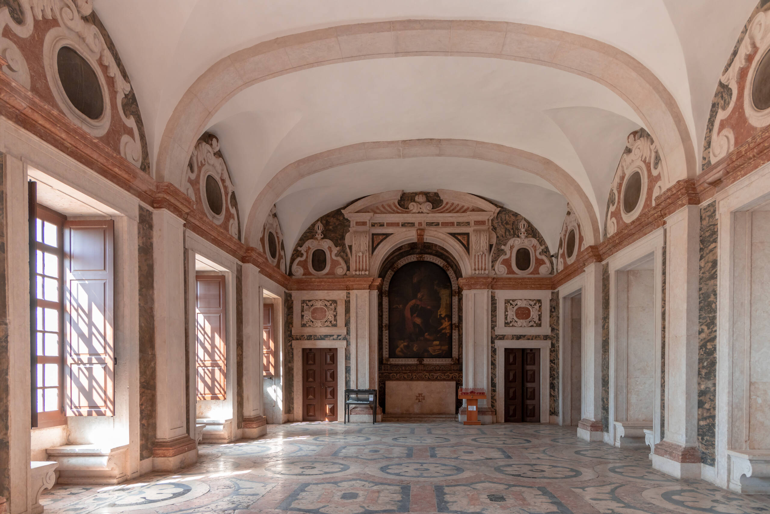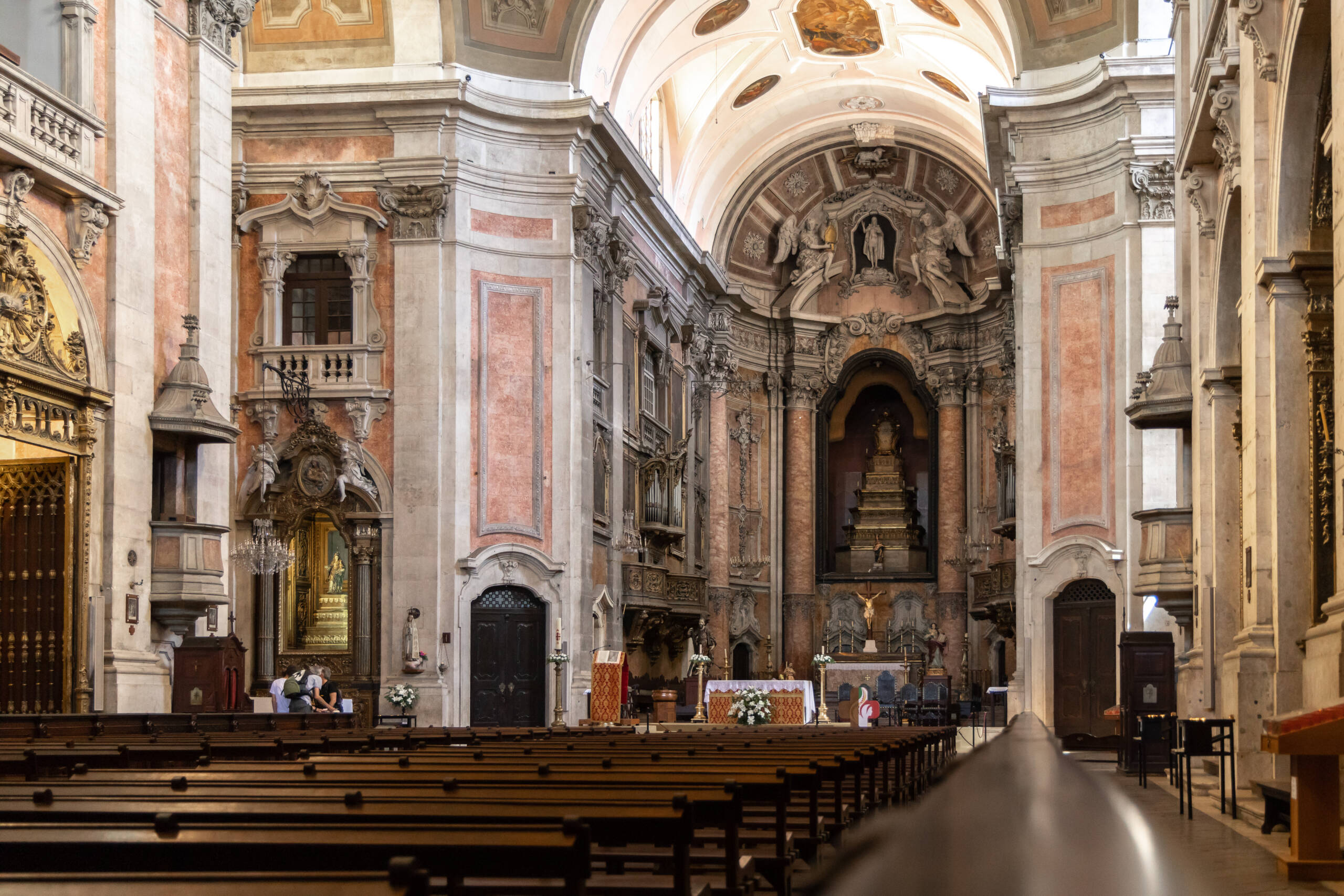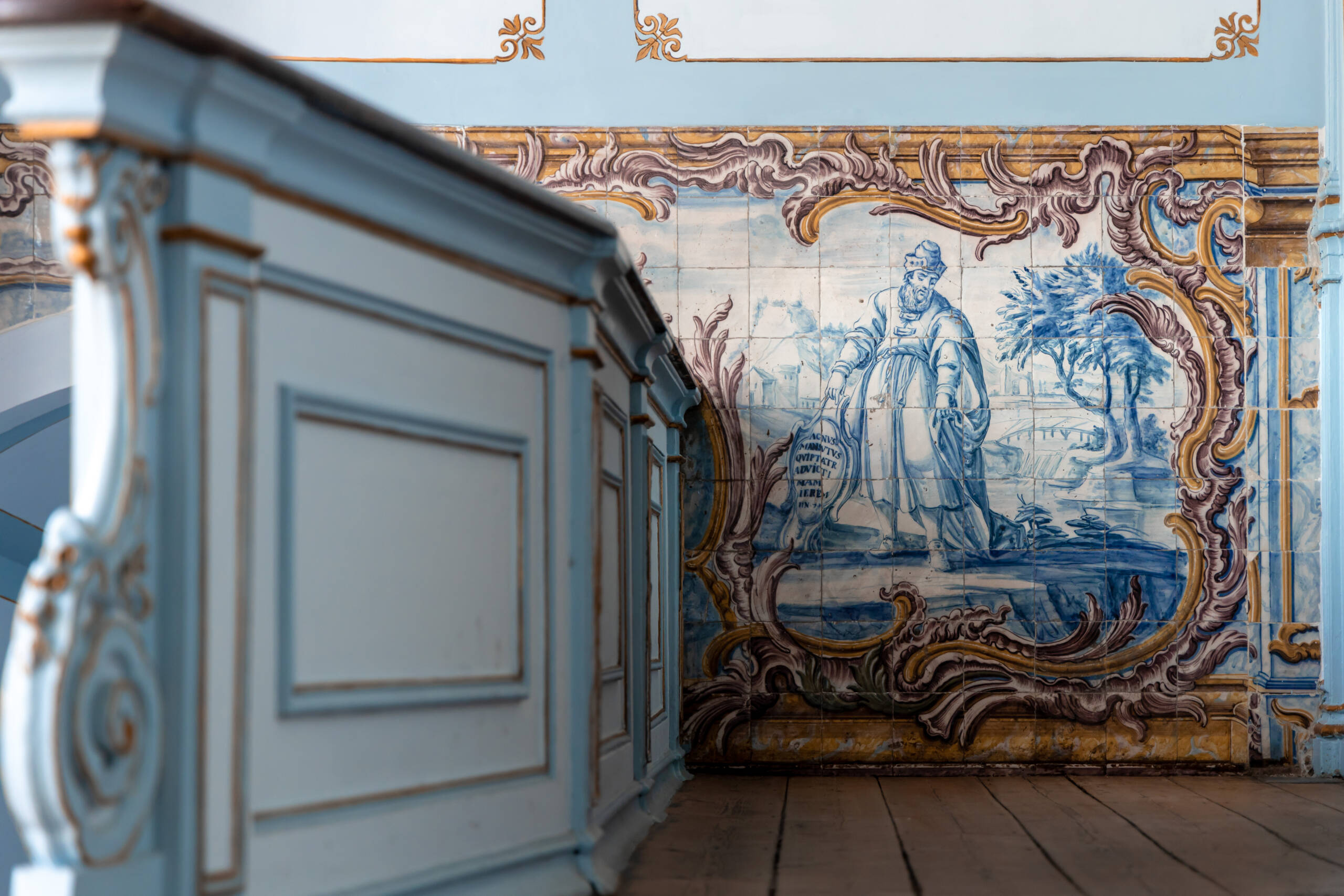 o teto pintado por Pedro Alexandrino de Carvalho e as esculturas do século XVIII das capelas intermédias.